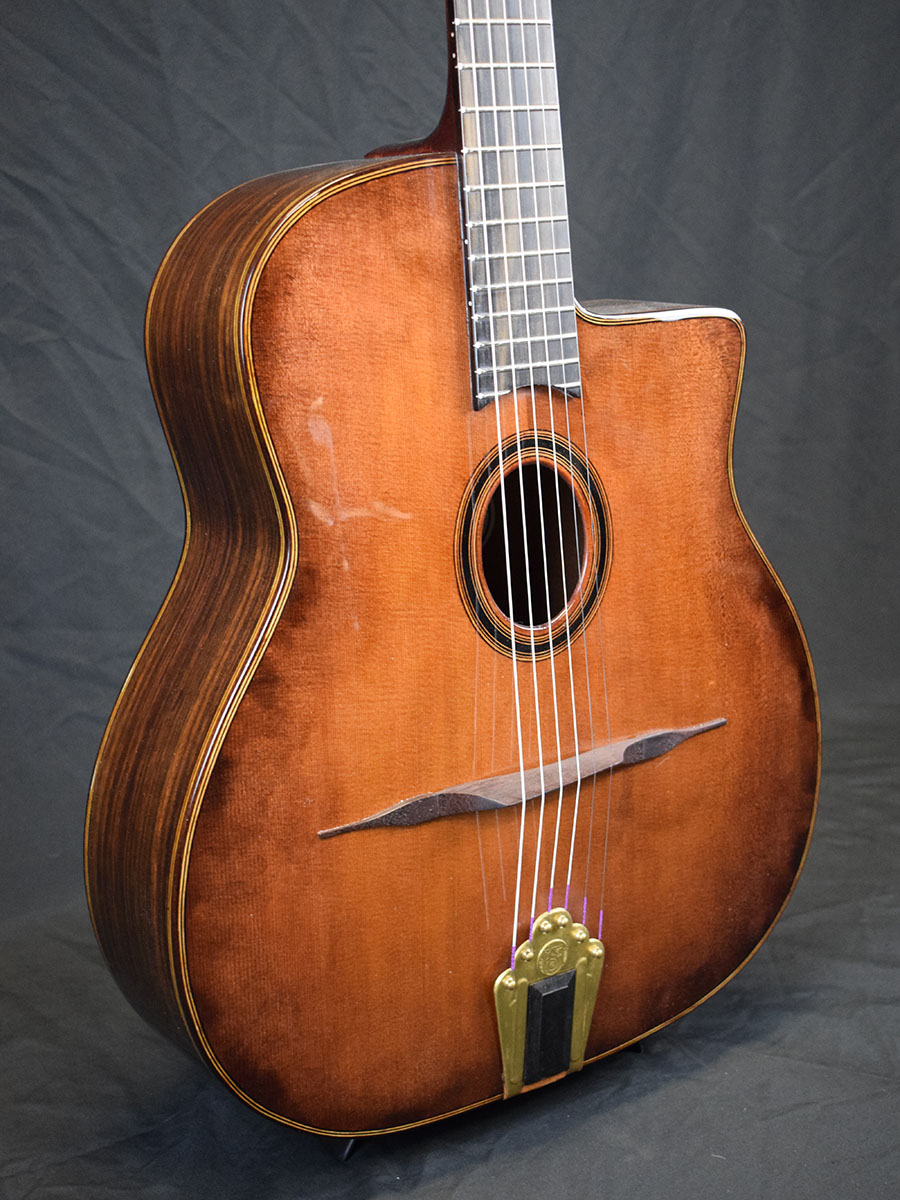 Table épicéa, fond et éclisses palissandre.