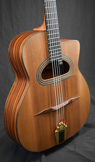 vendue Florian Jégu Modèle Jazzman Selmer avec softcase Table épicea, fond et éclisses wenge. |