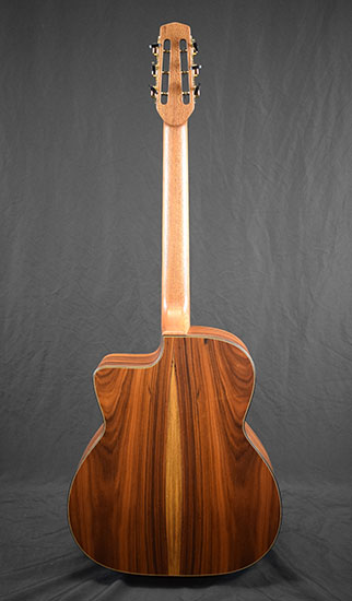 vendue Florian Jégu Alla Macca avec étui Table épicéa de Sitka, fond et éclisses palissandre de Santos, manche érable. |
